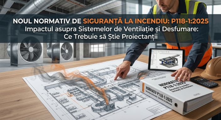 Pentru proiectantul de instalații, P118-1:2025 nu este un document de citit o dată și uitat. Este cadrul legal care determină ce tipuri de ventilatoare pot fi montate, ce certificate trebuie să aibă, cum se dimensionează sistemele de desfumare și ce documentație este necesară pentru avizul ISU. Orice eroare de proiectare în raport cu normativul poate duce la refuzul avizului, la reluarea proiectului sau — în cel mai grav caz — la un sistem care nu funcționează în caz de incendiu real.