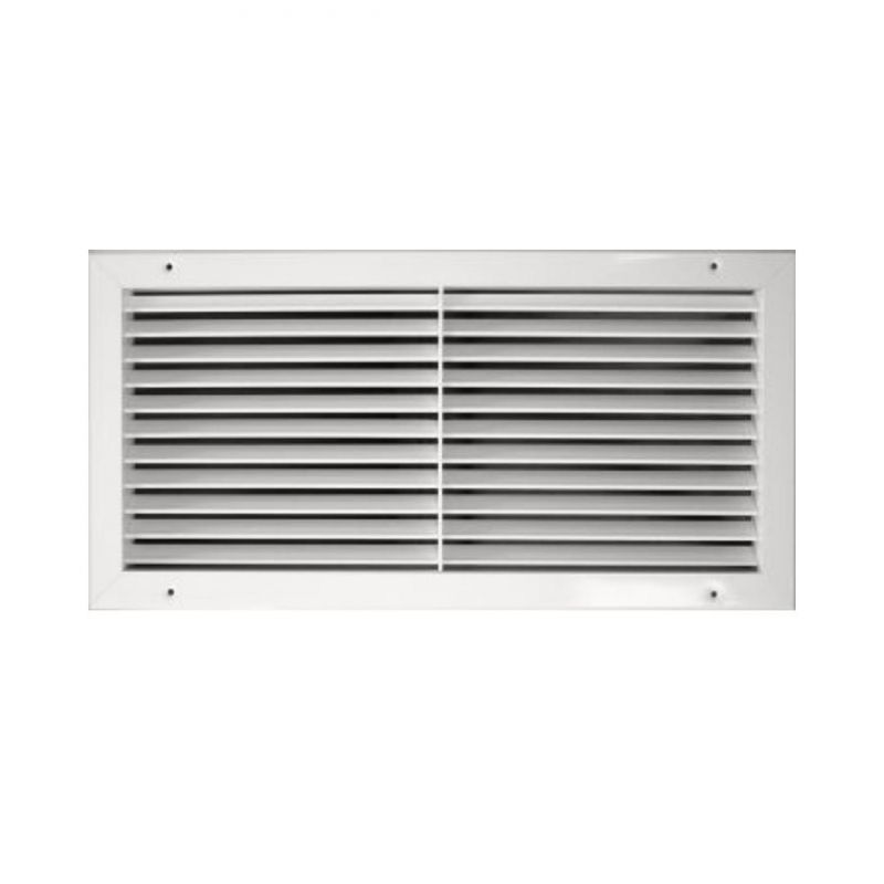 Return air grille for wall or ceiling installation made by anodized aluminium. With one row of fixed blades in angle 45o. The blades are parallel to the first mentioned dimension. Electrostatic paint in RAL color is possible.